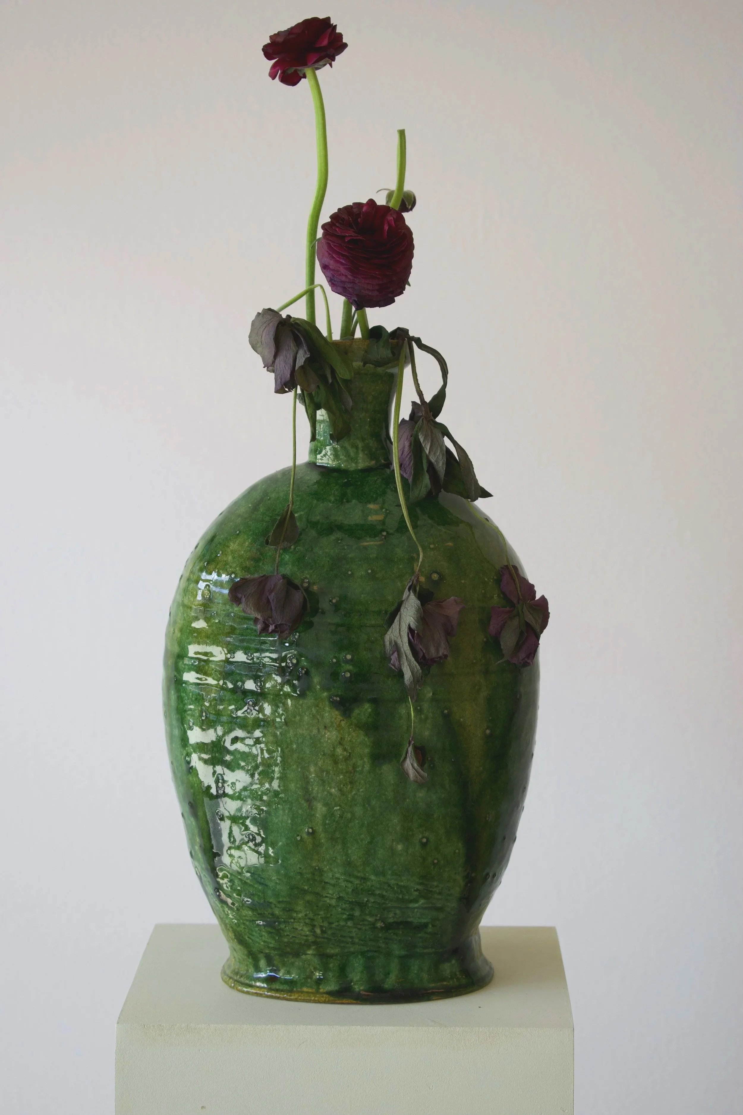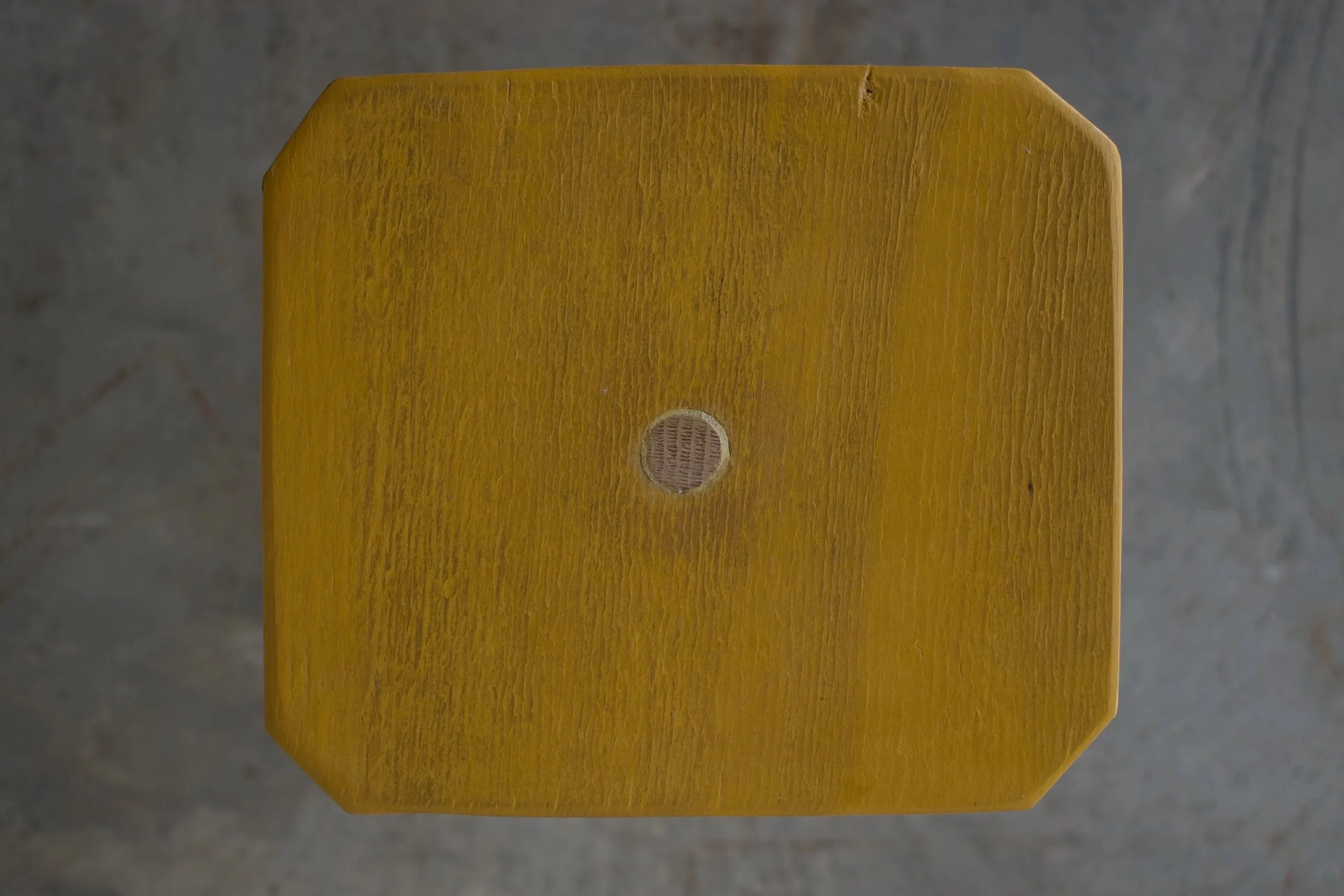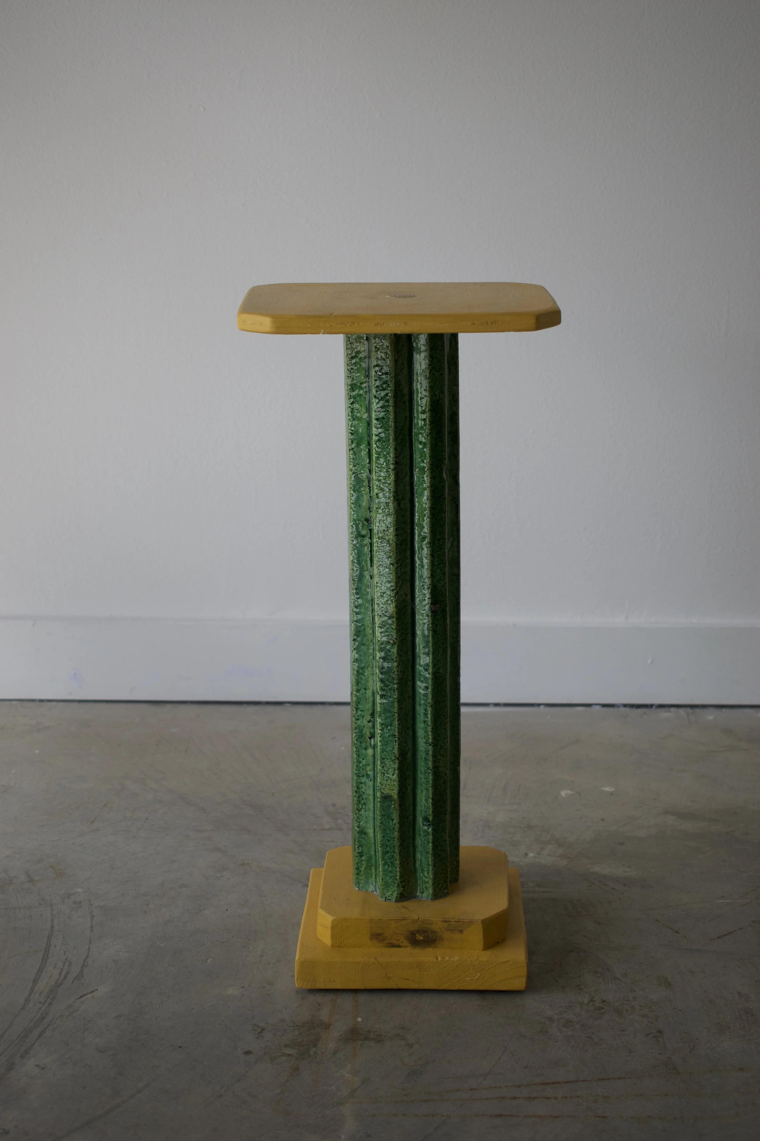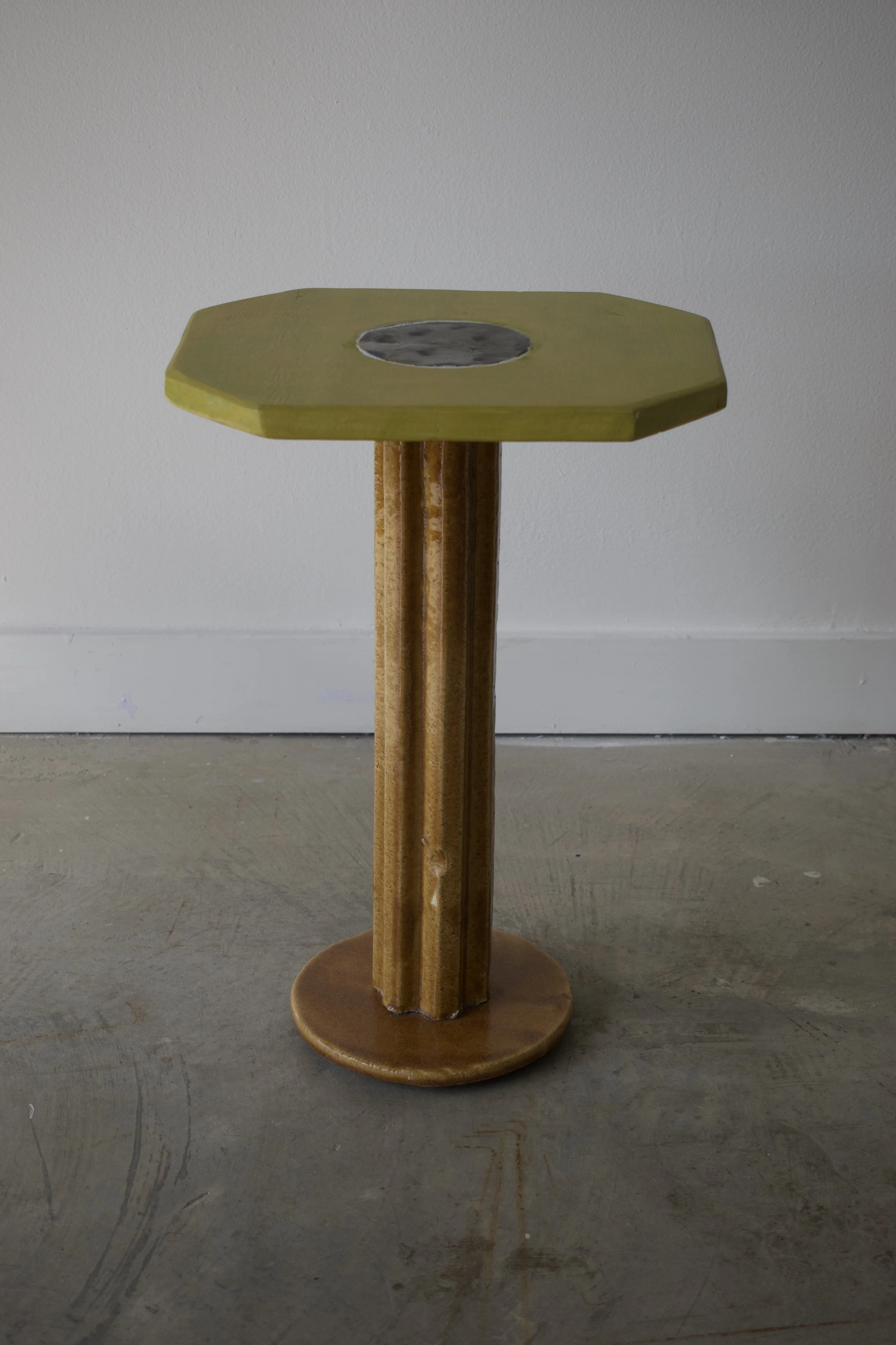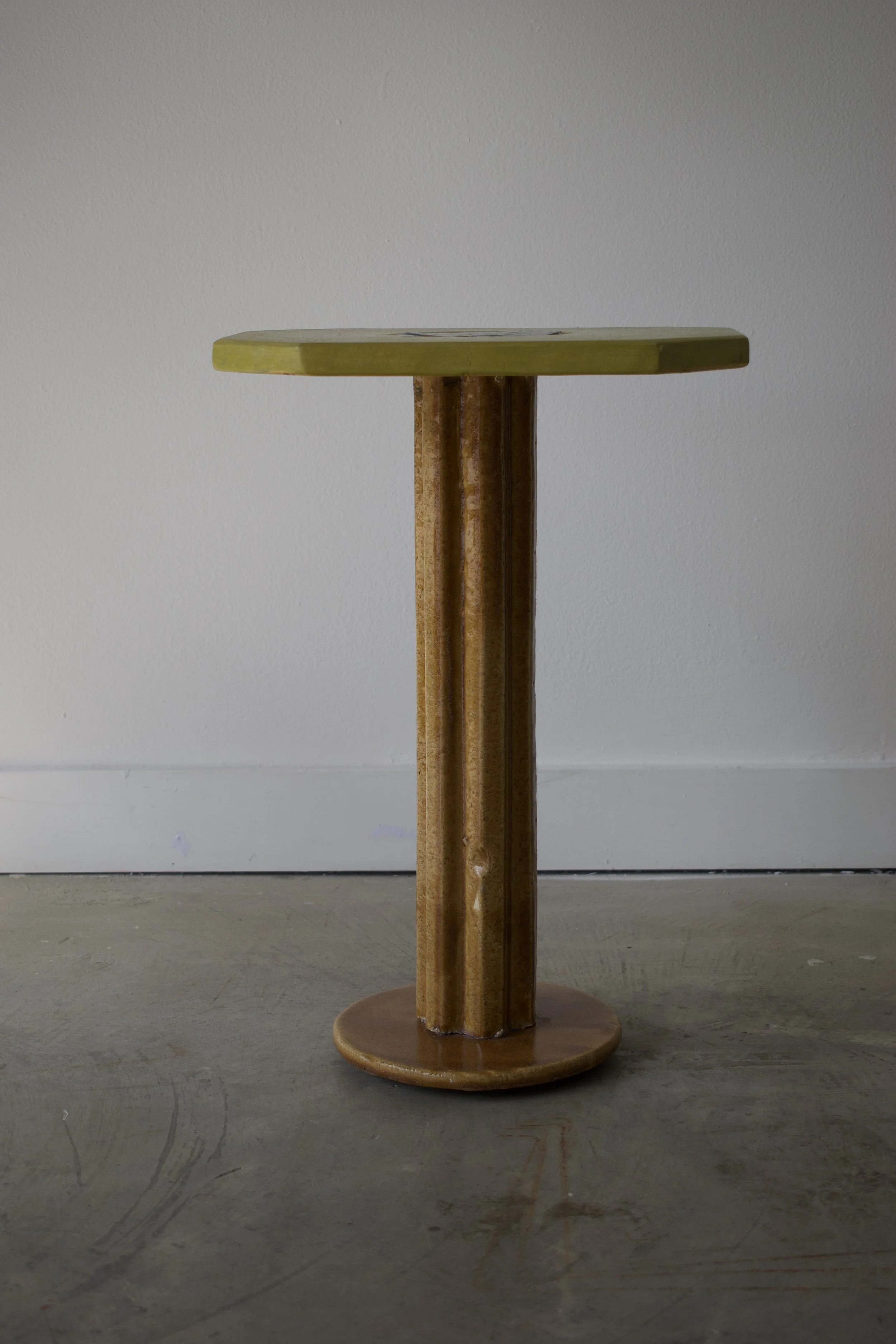 Side Table with Insert, 19 x 13 x 10.5”. Glazed ceramic, wood, milk paint.